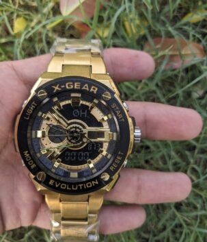 X-Gear 3788 Gold Addition Military Sports Multi-function Digital Stainless Steel Sports Men Watch